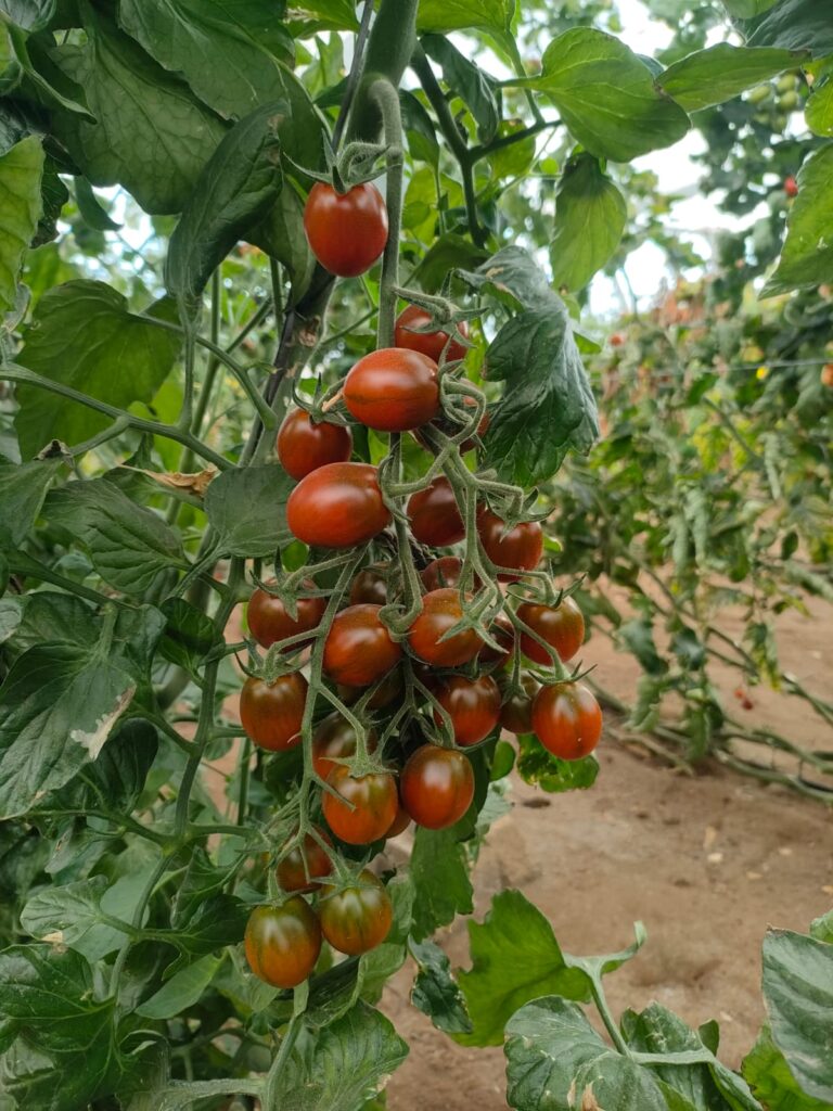 Indeterminate brown cherry plum with excellent flavor, 7.7º Brix.